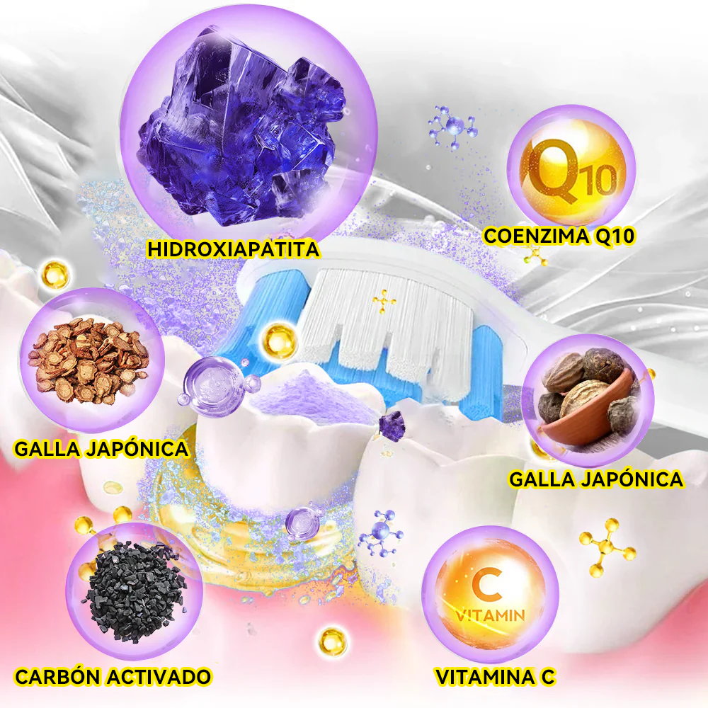 ๐ณ๐บ๐๐๐ผ๐๐๐บยฎ ๐๐ช๐ฆ๐ฏ๐ต๐ฆ ๐๐ฆ๐ฑ๐ข๐ณ๐ข๐ณ ๐๐ช๐ฏ๐ฆ๐ณ๐ข ๐๐ฐ๐ญ๐ท๐ฐ contiene seis ingredientes clave potentes y probados: hidroxiapatita, coenzima Q10, carbรณn activado, vitamina C, Galla Japonica y Triphala.