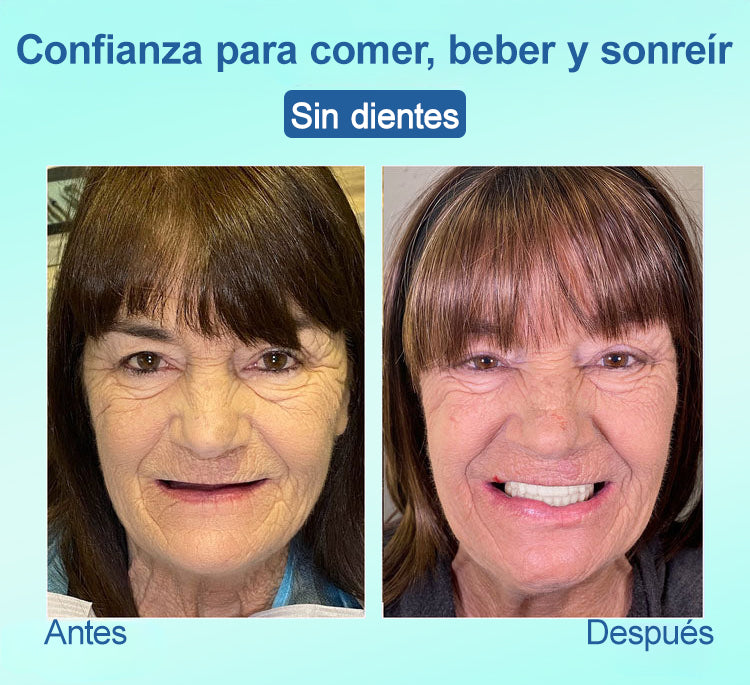 El ajuste es increรญblemente cรณmodo y el aspecto natural es extraordinario; nadie nota que llevo dentadura postiza. Masticar es muy fรกcil y por fin puedo disfrutar de mis comidas favoritas sin molestias. Me siento segura de mรญ misma de nuevo y mi rostro luce mรกs lleno y juvenil. ยก๐๐๐ฌ๐ฌ๐๐๐ฆยฎ realmente me ha devuelto la sonrisa y la autoestima!