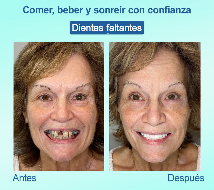 ยกEstoy mรกs que feliz con mi nuevaย ย prรณtesis dental ๐๐๐ฌ๐ฌ๐๐๐ฆยฎ! Antes, me sentรญa insegura y mis dientes viejos me hacรญan parecer mayor. Ahora, me veo mรกs joven, me siento segura y por fin puedo volver a disfrutar de la comida. ยกEl ajuste es seguro y se siente tan natural!